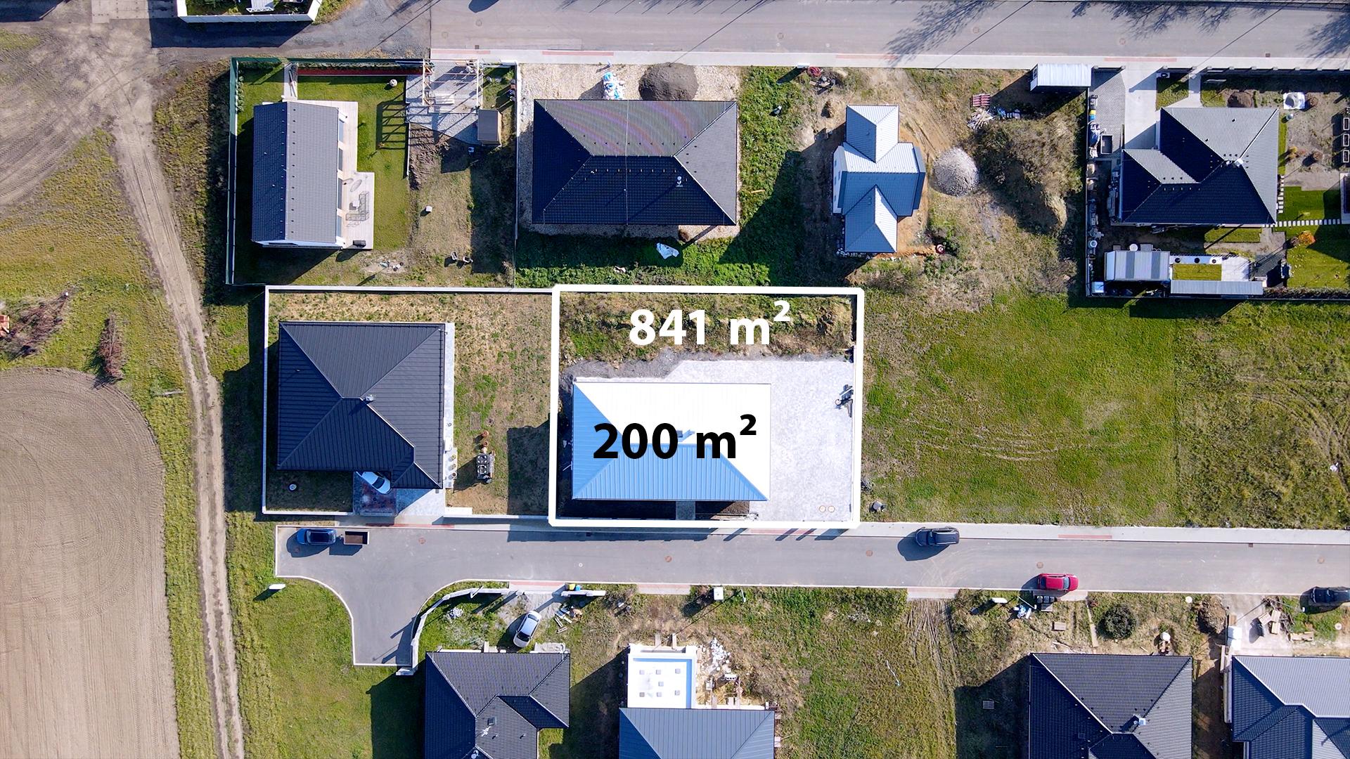 Pozemek má 841 m² – dost místa na soukromí, bazén i odpočinek, ale zároveň se nestane vaším koníčkem na celý víkend. Parkování? Dvě auta na pozemku čekají na rodinné přesuny, výlety i školní rozvozy.